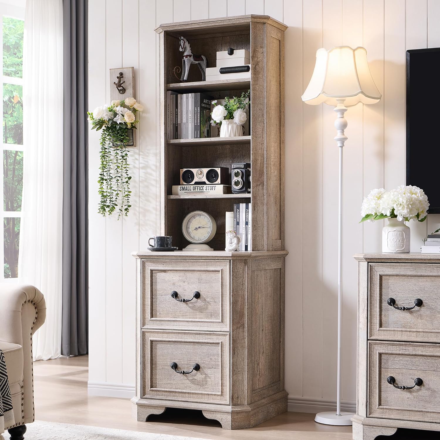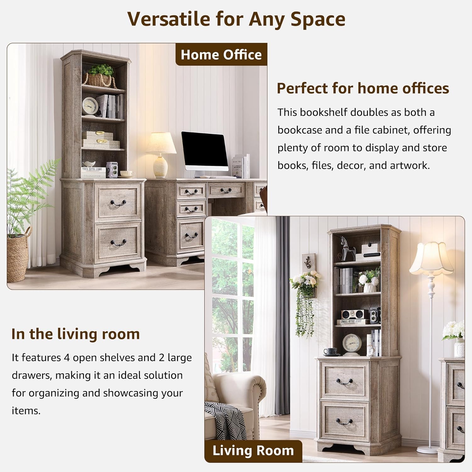 T4TREAM 6-Tier Bookcase with 2 File Drawers, 72" Tall Farmhouse Bookshelf with Storage & Adjustable Shelves, Wooden Floor Standing Display Book Shelf Organizer for Home Office, Light Rustic Oak