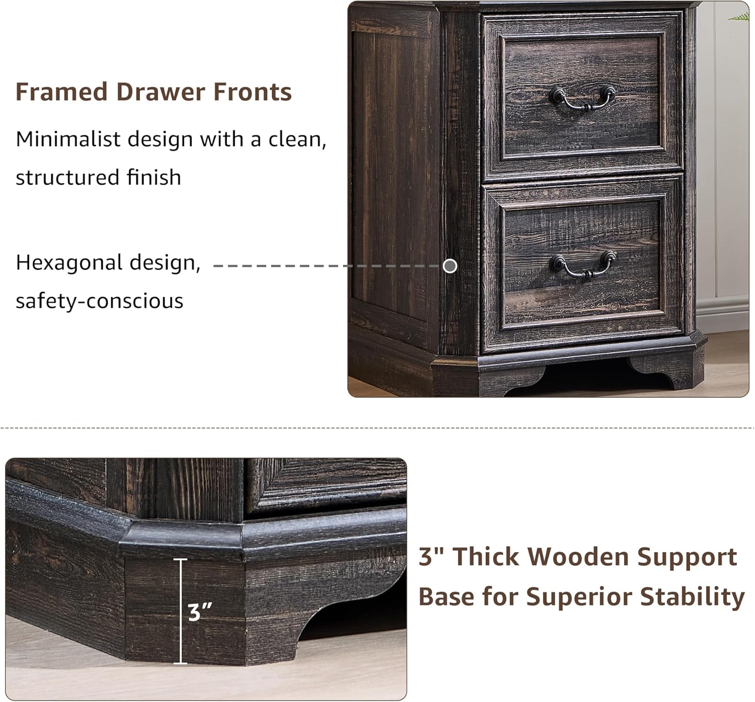 - 2 Spacious Drawers with Flexible Hanging Rods: The two large file drawers (16.3"L x 16.3"W x 10.2"D) include removable hanging rods, allowing you to organize Letter, Legal, A4, and F4 file sizes. Need extra storage? Simply remove the rods to transform the drawers into versatile compartments for clothing, accessories, or seasonal items. Smooth metal drawer slides ensure effortless opening and closing, while the interlock safety system prevents both drawers from opening simultaneously