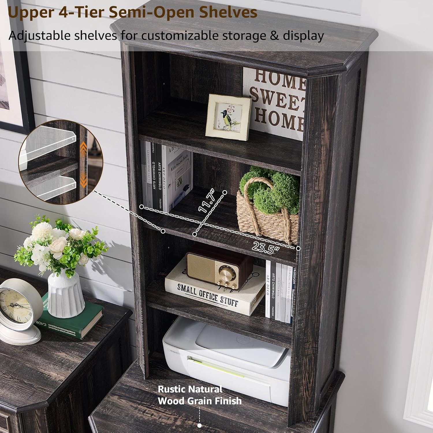 - Multipurpose Storage for Any Room: More than just a book shelf with storage, this versatile unit functions as a file cabinet, display case, or storage organizer. Use it in an office for documents, in a living room for dΓ©cor, in a kitchen for cookware, or even in a classroom or library as a dedicated book corner. The timeless farmhouse style seamlessly complements any setting