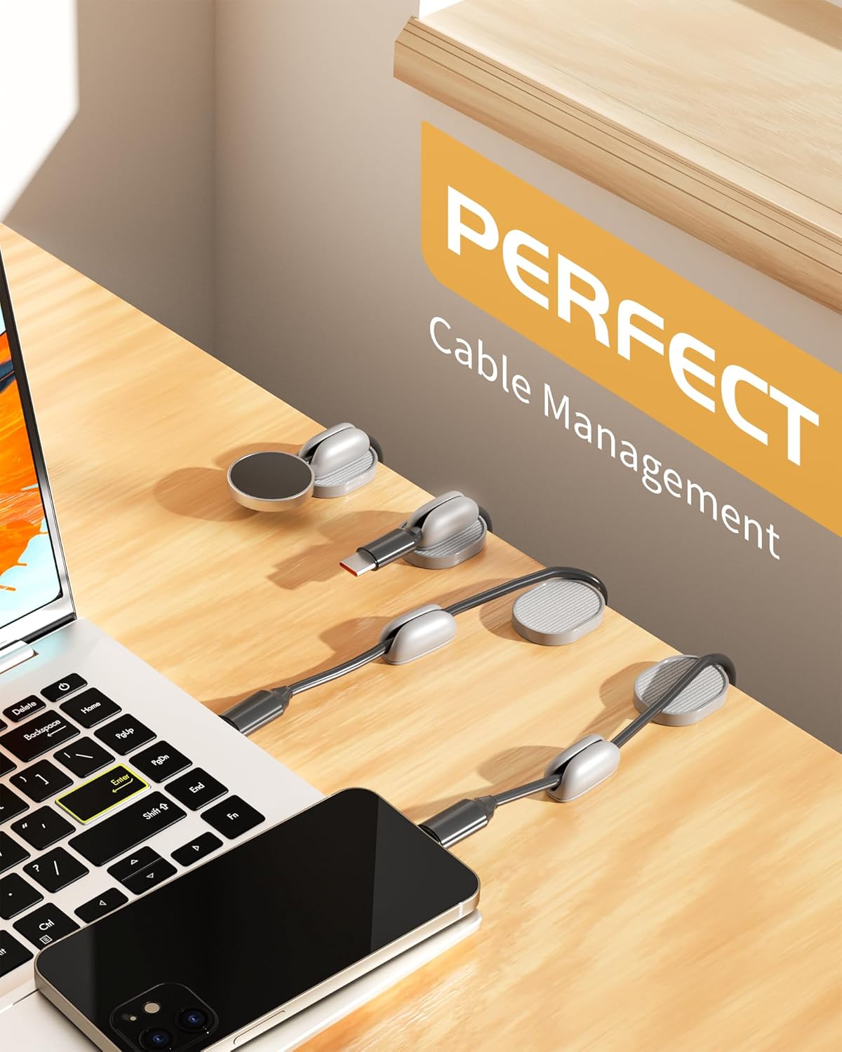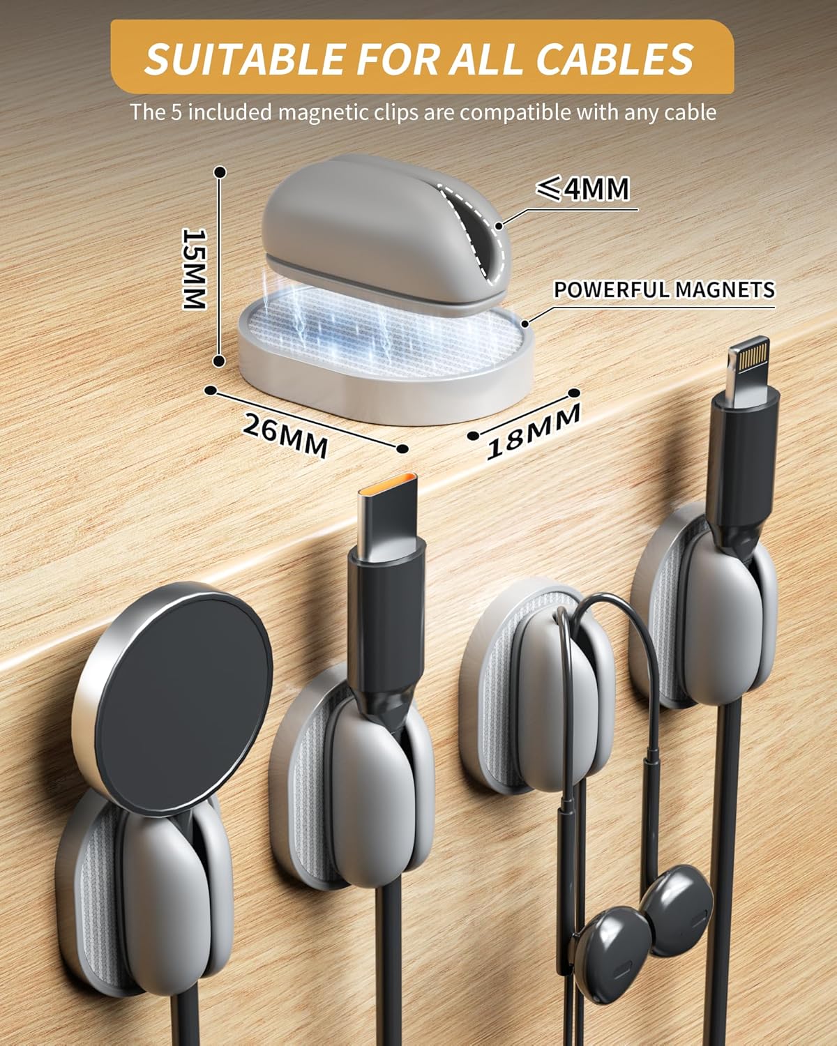 - 【Hold Most Cords】Diameter of about 0.16 inch (4mm) allows to hold most cords, such as Type-C charger cords, lightning cords, HDMI cords, USB cables, PC Notebook power wires, network wires, mouse cords, keyboard cables, headphone cords