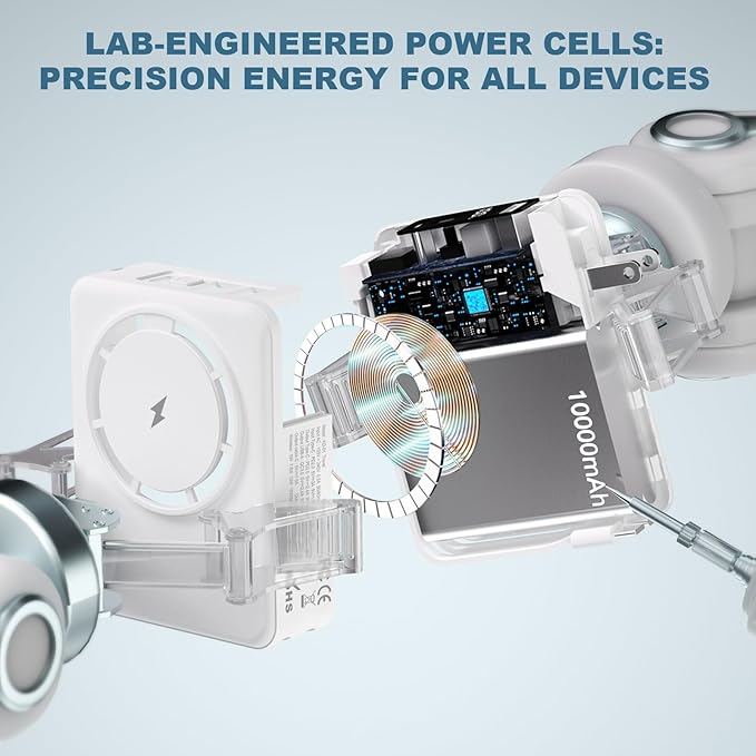 - Magnetic Charging & Cable Flexibility: Seamless Magnetic Freedom magnetic power bank: Use the battery charger iPhone battery charger portable / phone battery bank to effortlessly charge devices during meetings or coffee breaks by simply snapping your phone onto the super strong magnetic charging pad portable charger magnetic. Our portable charger with built in cable, but the built in cable is replaceable, when cable extended reach is needed, smoothly swap our built-in USB-A cable with your longer USB C cable portable charger USB C / USB battery pack in seconds. Technology designed for elegance in motion. Back to school supplies portable iPhone charger / battery pack for iPhone