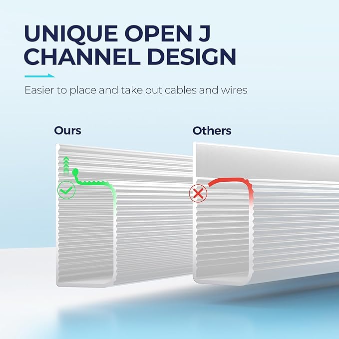 - Traceless Installation Experience: Our J channel wire organizers for cords features a high strength self adhesive backing that simplifies the installation process, eliminating the need for drilling or additional tools, the easy to remove nature of our desk cable management kit allows you to adjust the position of cord organizer for desk or clean the area without leaving any residue