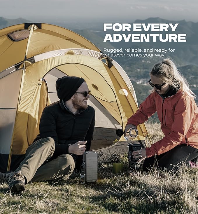 - 65W PD3.0 & QC3.0 fast charging: Power up faster than ever with these fast-charging ports: 65W PD3.0 Type-C1, 20W PD3.0 Type-C2, and 18W QC3.0 USB-A; This solar power bank charges your iPhone 16 to 55% in just 30 minutes—perfect for travelers and adventurer enthusiasts who needs quick top-ups on the go.