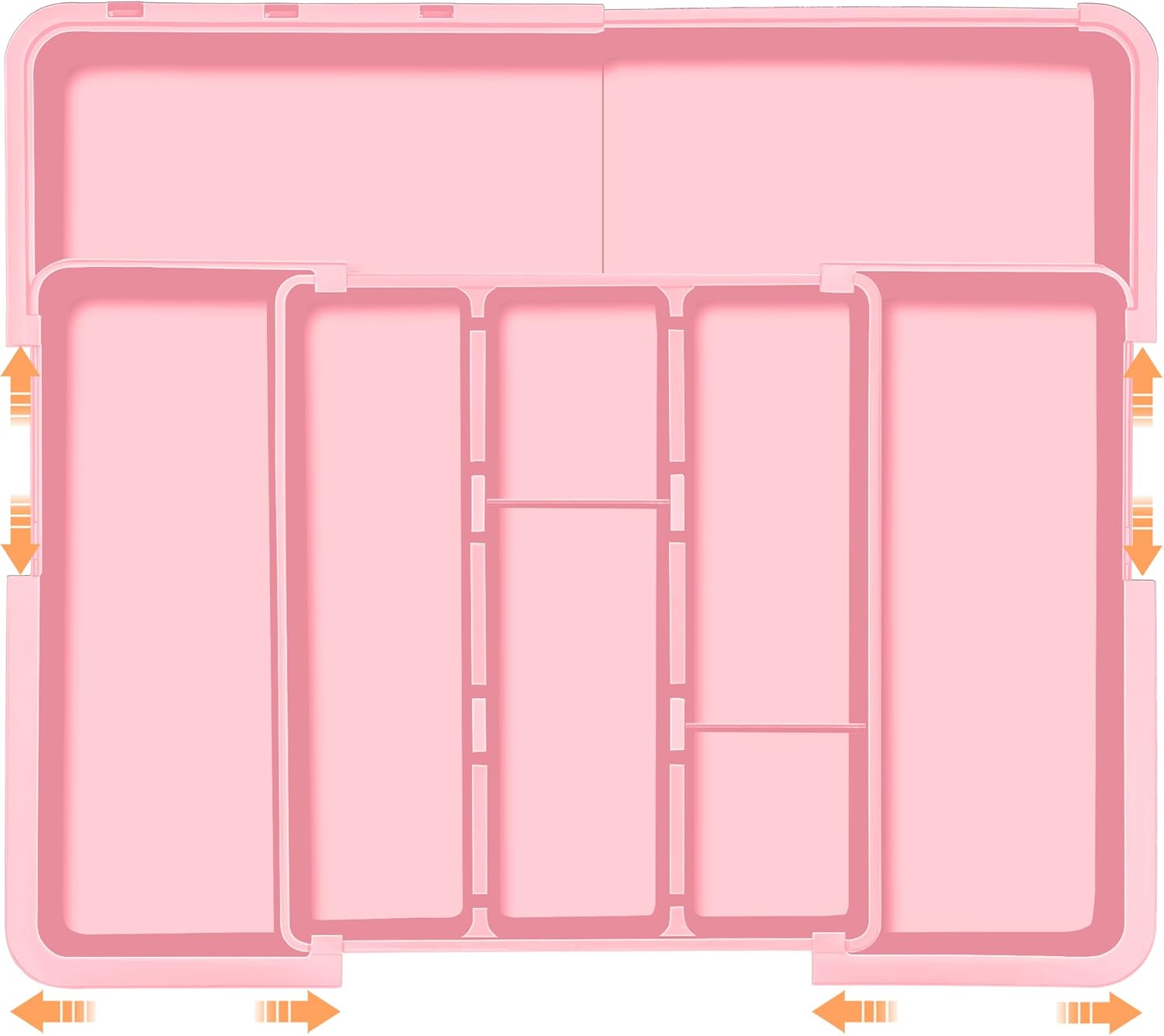 Large Utensil Drawer Organizer Expandable Silverware Organizer for Kitchen Drawer Adjustable Cooking Utensil Holder Cutlery Flatware Tray Spatula Tools Gadgets Storage Dividers Plastic Pink