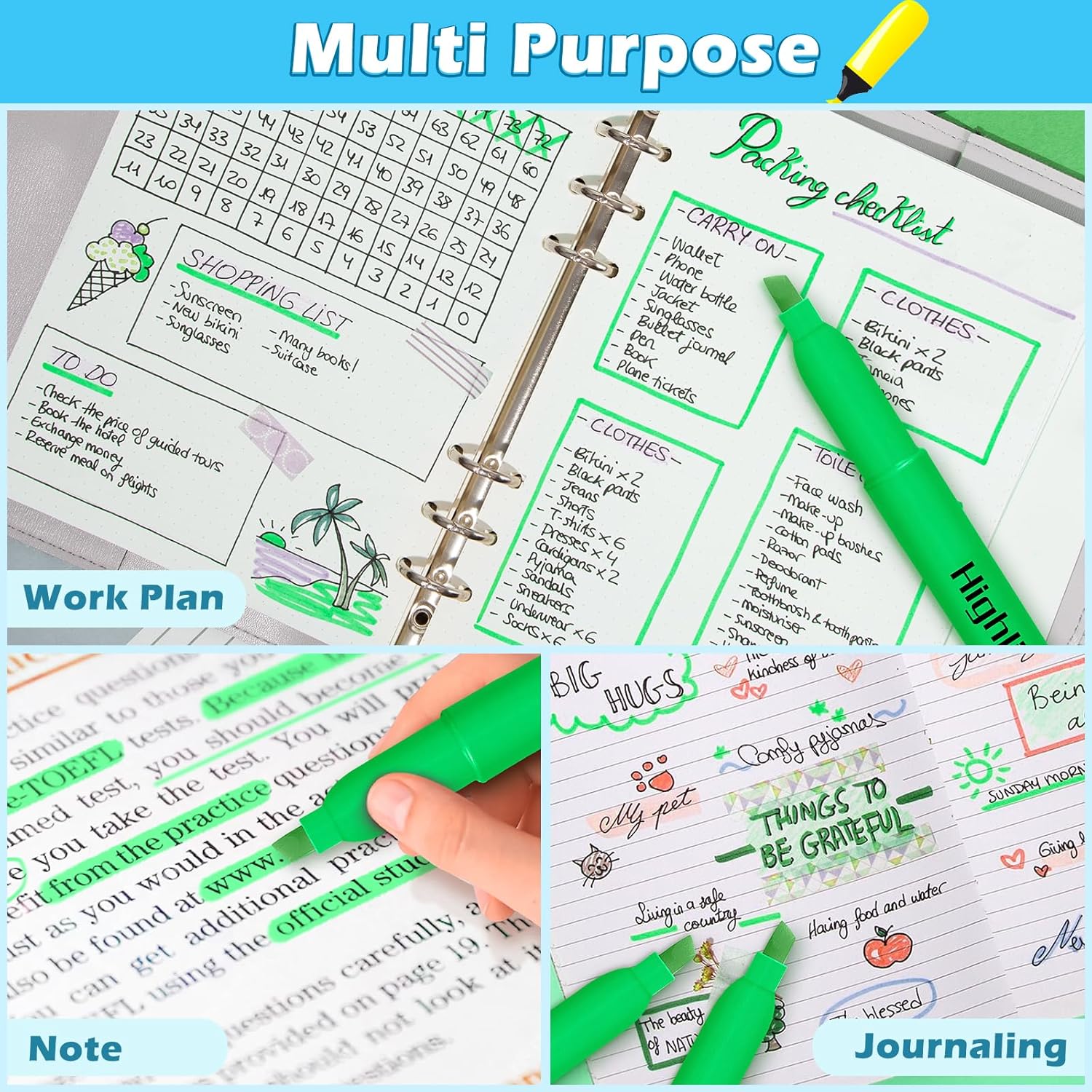 - 30 Fluorescent Green Highlighter: 30 packs highlighters bulk to help you classify different topics or concepts.Perfect for color coding and highlighting favorite book passages or notes. If you are looking for smooth, pretty, light fluorescent green highlighters, then these will not disappoint.