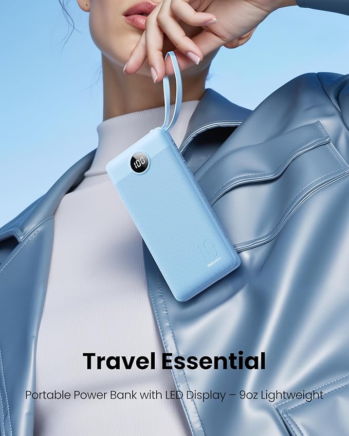 - 【Slim Portable Charger】Measuring just 5.7 x 2.7 x 0.73 inches and weighing only 9.17 ounces, this ultra-compact power bank is incredibly lightweight and pocket-friendly—slip it into your jeans, purse, or backpack with zero bulk.