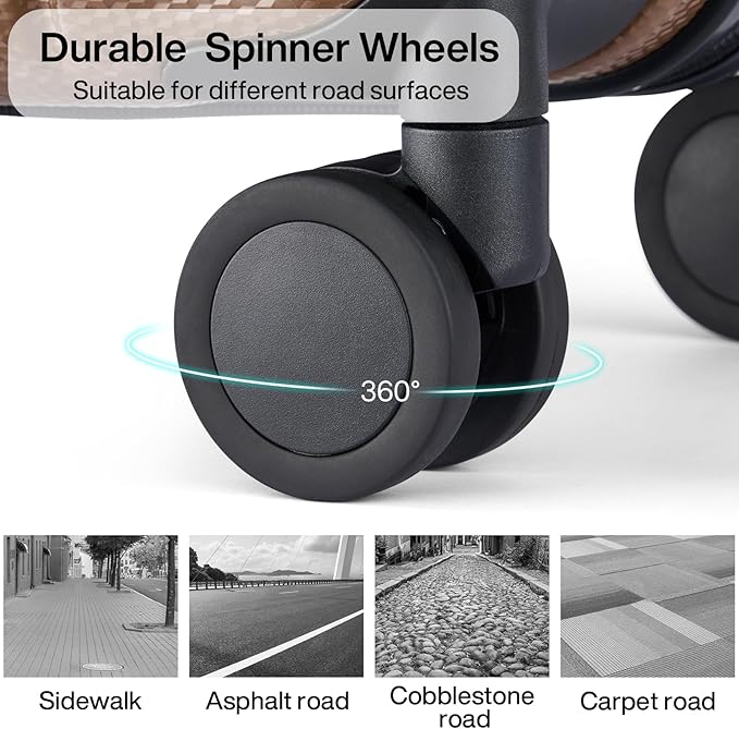 - 【High Quality Accessories】SJ . TOBOL durable spinner wheels,It is composed of precision shaft center and thickened TPE wheel skin, which is very wear-resistant,quieter and has strong bearing capacity, It is applicable to different roads such as cobblestone road and carpet road. Smooth and durable 5-strand reinforced explosion-proof zipper reverse coil prevents burst zipper. Travel-approved combination lock is safe and convenient. Ergonomics telescopic handle with multi-steps adjustment.