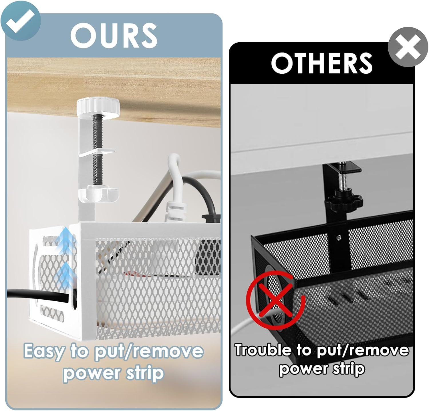 - 【No More Mess】Keep the cables and sockets tidily stored to maintain a clean and organized desk and floor. The desk wire management keeps all cables and sockets away from your kids, no more worry about tripping.