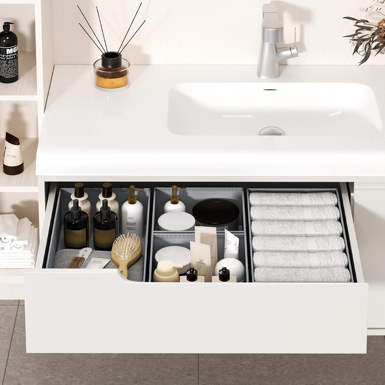 - Stable Structure:The dresser drawer organizers is made of high-quality non-woven fabric, with reinforced lining and professional sewing technology to ensure that each bathroom drawer organizer is firm and not easy to deform, and can keep the interior of the closet storage drawers neat and tidy for a long time, suitable for frequent daily use