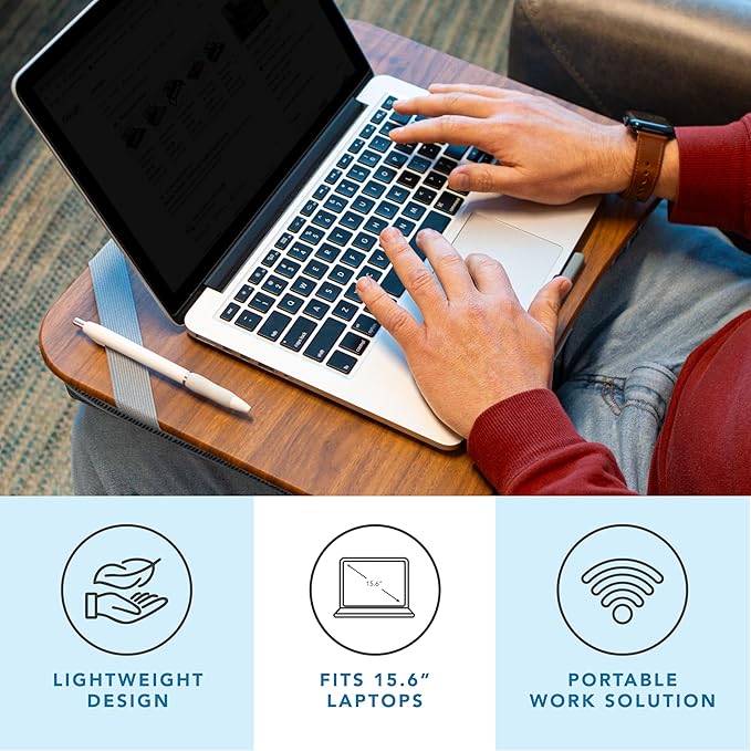 - Fits Laptops up to 15.6”: Solid 17.3" x 13.3" surface gives you a stable workspace for laptops, tablets, or notebooks anywhere.