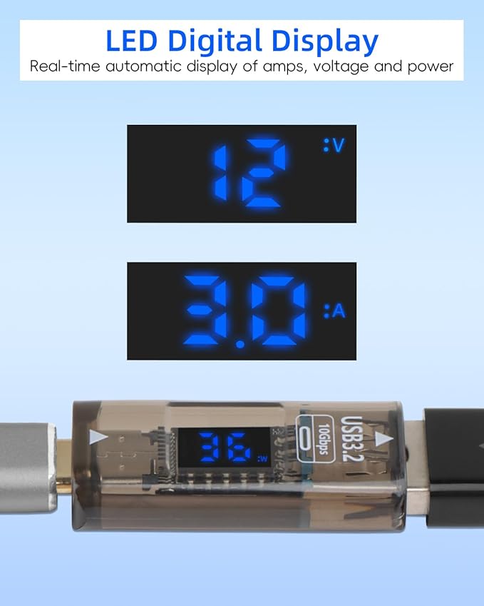 - USB C female to USB a female adapter has an intelligent digital display that automatically switches,allowing you to see the voltage,current, and charging power at a glance.