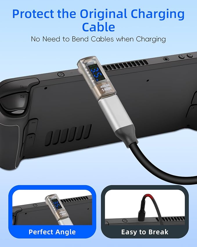 - USB C male to USB C female Adapter,using a 270 degree right angle design,so that your cable has a suitable extension direction,very suitable for saving space and using in narrow spaces,can avoid cable and device input port wear and tear, prolong service life