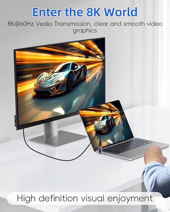 - Supports 8K@60Hz HD resolution casting and video transmission,which can transfer the video of USB C device to the monitor, TV or projector,whether it is for work or entertainment, you can enjoy smooth(Note: A cable that can support video transfer is required).