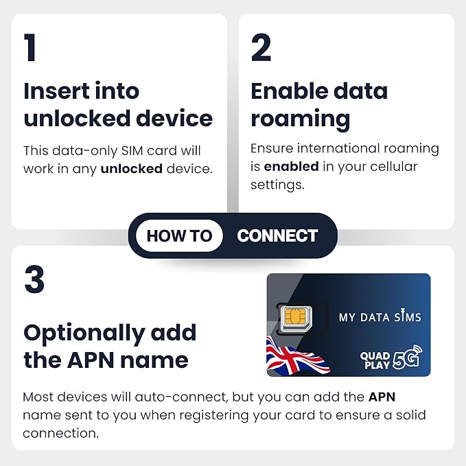 - DATA ONLY SIM CARD: This SIM is optimized for data-intensive uses and does not include voice or text messaging services.
