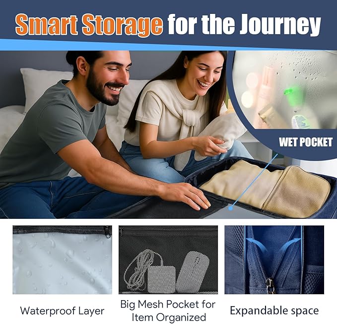 - 【Sturdy & Lifetime】: The large travel backpack is well made of Water-Repellent and Sturdy Nylon Fabric with metal zippers. Could be survived in different temperatures. Foam padded top handle is comfortable to carry on for a long time. With sturdy zippers and decent stitching, this Men backpack won't show any defects when on the go, ensuring you an unforgettable weekend getaway. A practical Christmas and New Year gift for your loved one.