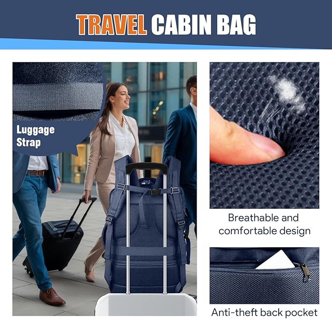 Travel Laptop Backpack, 50L Travel Backpack, 17.3 Inch Carry on Large Luggage TSA Flight Approved Laptop Bag, Multiple Pockets TSA Friendly Water Resistant Business Bag for Men, Blue