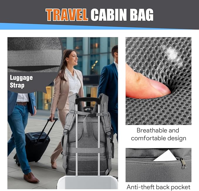 50L Travel Backpack, Carry On Backpack, Large Luggage TSA Flight Approved Anti-Theft Laptop Bag, Sturdy 17 Inch TSA Friendly Water Resistant College School Bag Gifts for Men,Grey