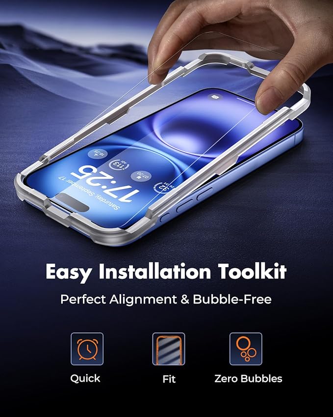 - Super-Easy Installation: This iPhone 16 screen protector kit includes an installation frame, alcohol wipes, dust removal stickers and absorbers, a microfiber cloth, and a guide. Perfect alignment is effortless, even for beginners.