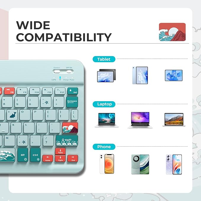 - ππ Universal Bluetooth 5.0 Compatibility:Seamlessly connects to iOS/iPadOS/Android/Windows/Mac devices, including:βοΈ Apple: iPad Pro M4 (13β/11β), iPad Air M3/M2, iPad Mini A17 Pro.βοΈ Galaxy Tab S9/S8 Series.βοΈ Other Brands: Fire Tablet, Surface Pro & 10,000+ Bluetooth devices