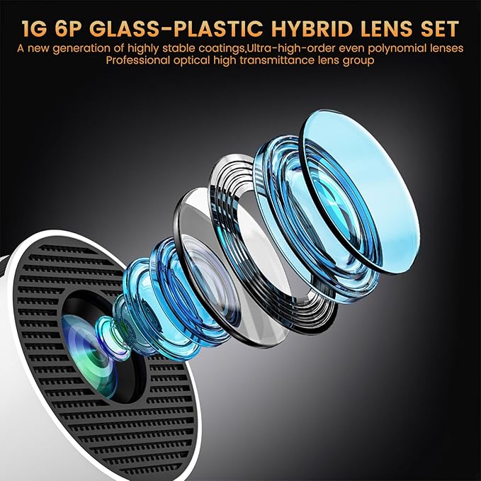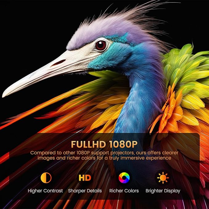 - 【High-Definition Picture Quality and Smooth Connectivity】 Supporting 1080P/4K resolution, the projector utilizes advanced LED technology to deliver bright and realistic projection effects. Seamless connectivity is achieved through WiFi 6 and Bluetooth 5.0, compatible with both 2.4G and 5G networks, ensuring smooth streaming. With 160 ANSI lumens brightness and a 1500:1 contrast ratio, bluetooth projector offers stunning visual effects.