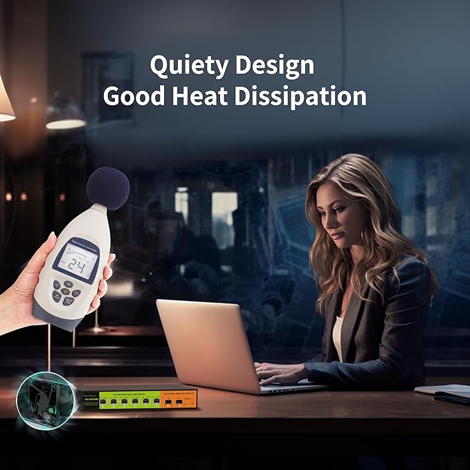 - 【Stable and Quiet】The durable metal case is equipped with 6KV lightning protection, special selection of 3200 RPM fan and high-quality chips to meet the cooling needs of the machine, less noise than 5000 RPM fan at the same time, to ensure a quiet and comfortable working and living environment. Double-sided cooling holes for a wide temperature range of 0~45°C, and stable operation. The LED indicator lights make it simple to monitor the network status.
