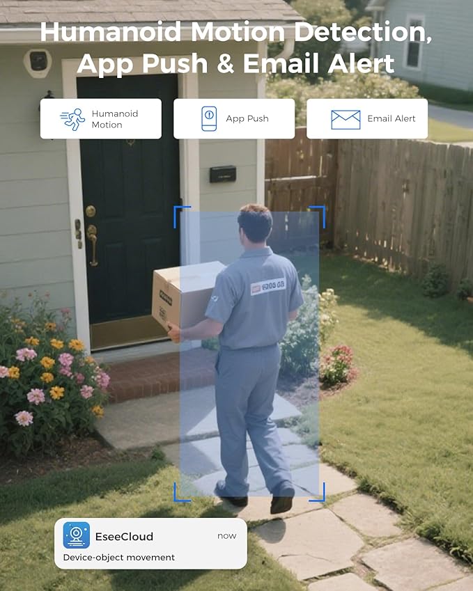 - 【Motion Sensor/AI Human Detection】 Motion detection of the wireless wifi security camera system give you 24/7 uninterrupted protection. Smartly distinguishes people from false alarms (like pets or shadows), sending alerts only for real threats by AI human detection