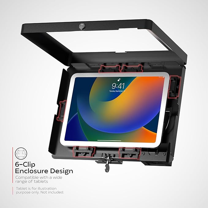 - {ANTI-THEFT} Through Its Secure Lock & Key System This Mount Keeps Your Tablet Devices Tamper Safe In Its Place.