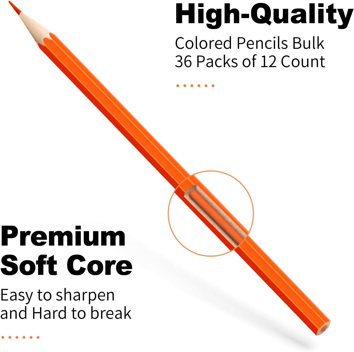 - Colored Pencils 432 count Bulk: Our extensive colored pencils bulk collection offers an impressive 432 pre-sharpened coloring pencils, featuring 12 vibrant assorted colors to meet all your artistic needs. Perfect for school projects, classroom activities, or adult coloring books, this color pencil set provides a diverse color selection to bring your creative visions to life with ease.