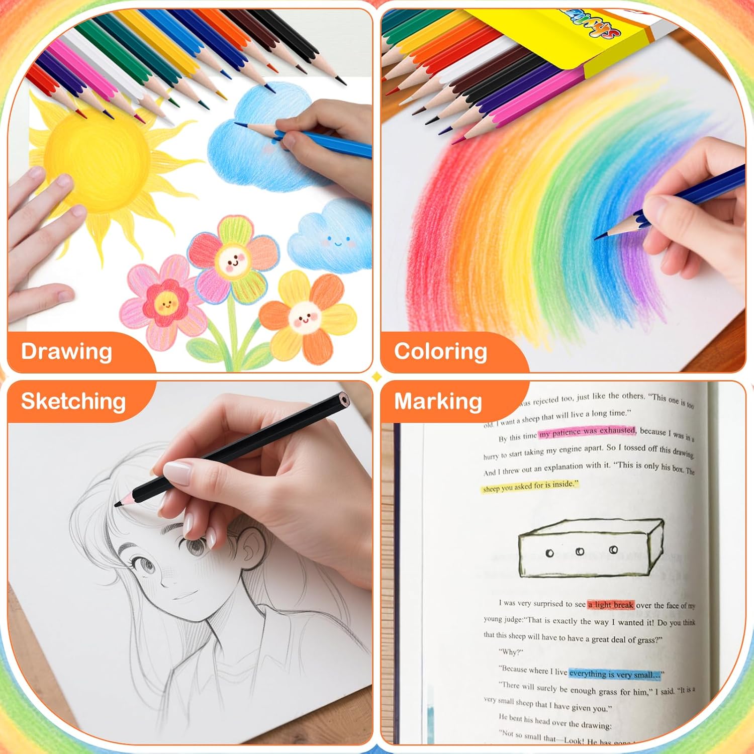 - Safe and High-Quality Materials: Crafted from premium materials, our bulk colored pencils are safe for children of all ages. The yet sturdy lead glides smoothly across paper, producing vivid colors. Crafted with a unique hexagonal barrel design, our color pencil offer a comfortable, non-slip grip thatβs ideal for hours of coloring without fatigue. The comfortable grip and easy-sharpening features make these color pencils suitable for both beginners and experienced artists, ensuring a pleasant coloring experience for everyone.