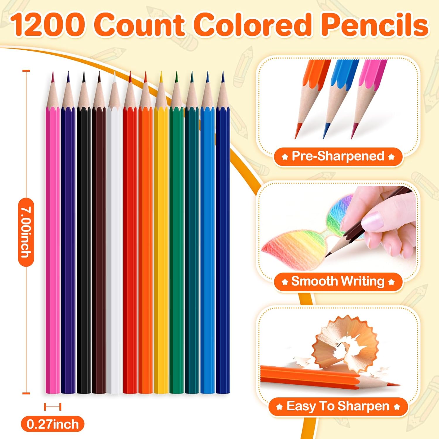 - Perfect Pre Sharpened Colored Pencils: The 100 pack colored pencils bulk set includes 1200 count premium quality colored pencils. Each pack contains 12 count pre-sharpened pencils of different colors. These colorful colored pencils are available in sufficient quantities and are designed for schools, classrooms and art studios to meet the needs of bulk purchases. Ideal for school supplies and drawing supplies.