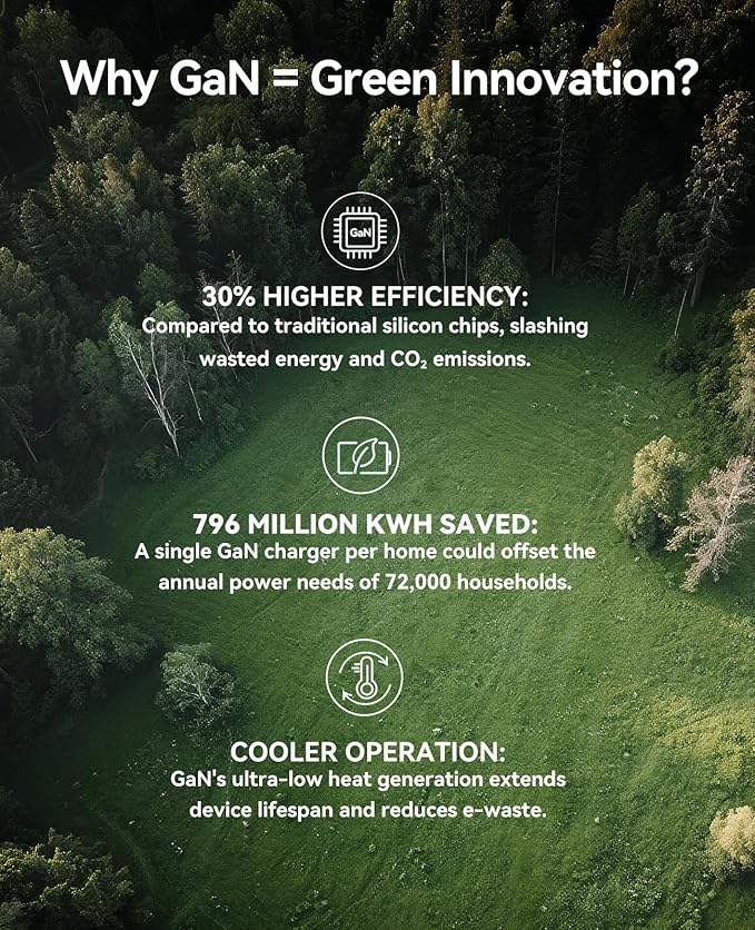 - 【ORICO GaN - Efficiency Redefined】ORICO 65W GaN Travel Power Strip is 30% more efficient than traditional silicon chips, reducing energy waste and CO₂ emissions. It runs cooler to extend device life and cut e-waste. One GaN charger can save up to 796 million kWh annually, enough for 72,000 homes. Choose GaN for a greener future