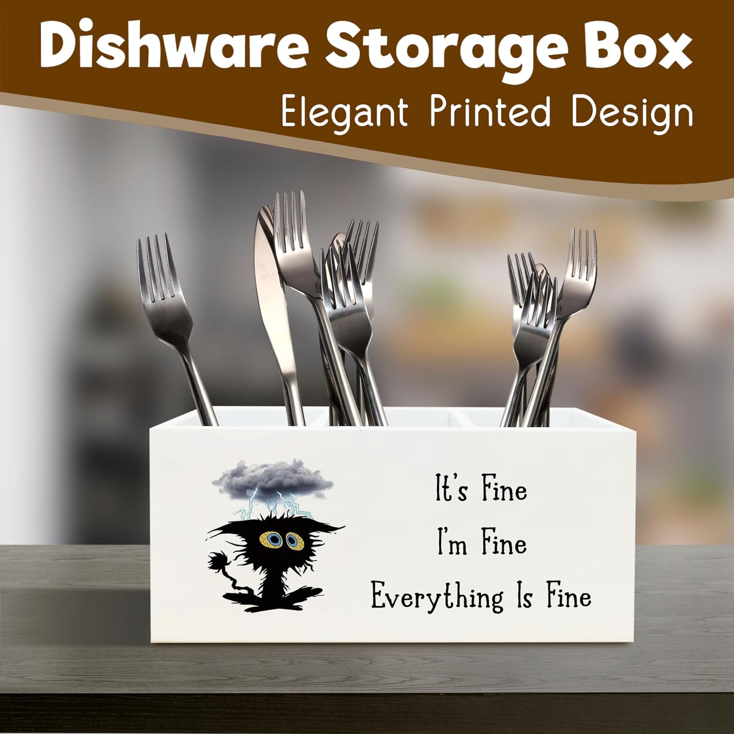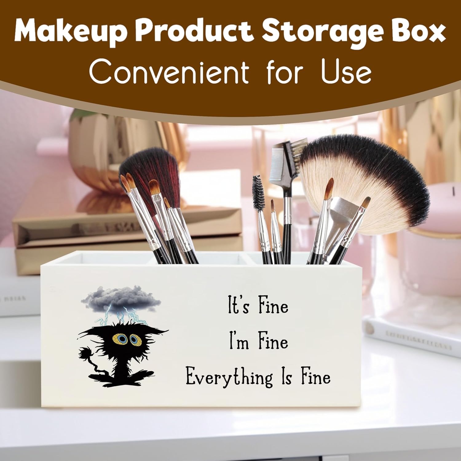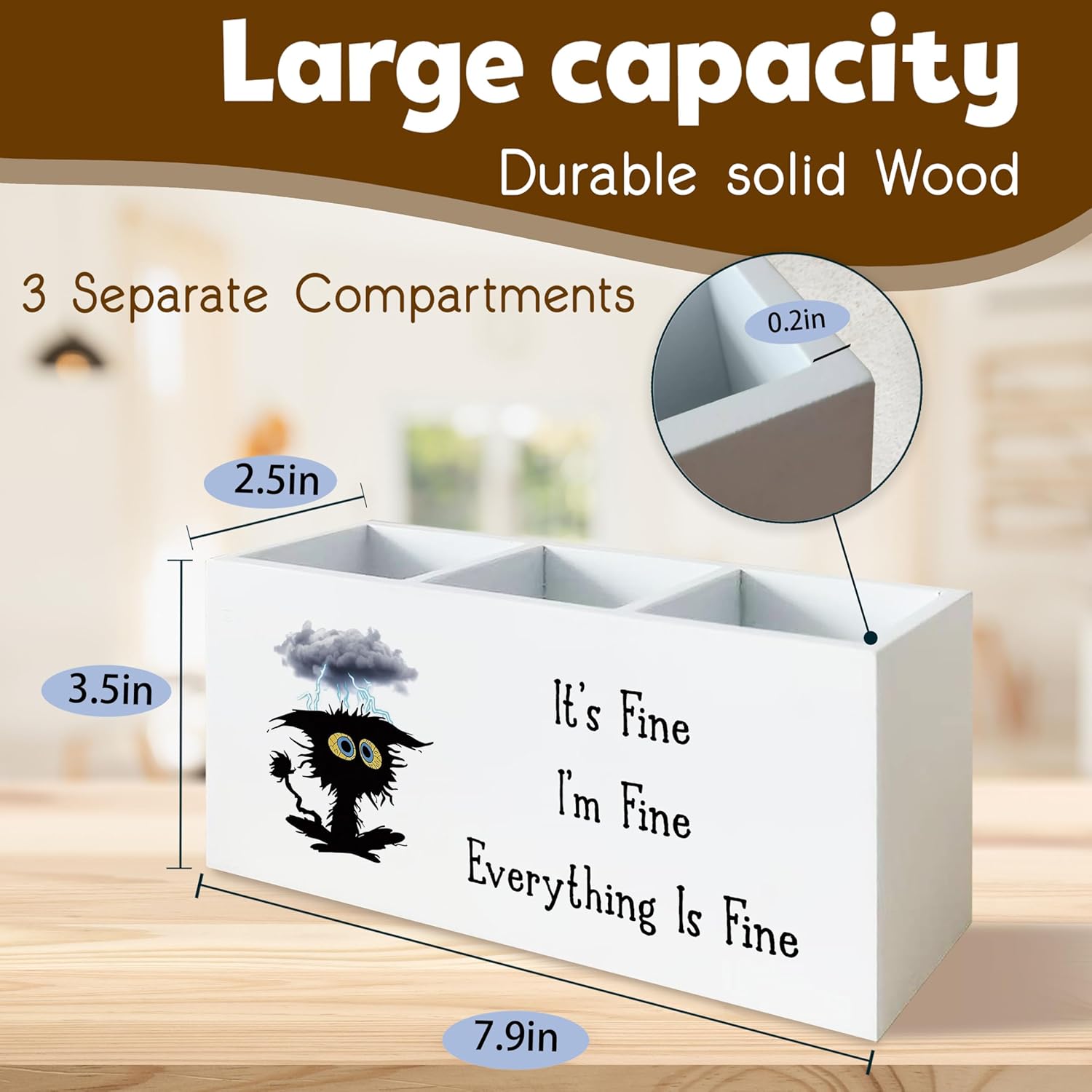 It's Fine I'm Fine Everything is Fine Funny Cat Pen Holder for Desk, Funny Desk Accessories for Work, Sarcastic Office Humor Gifts Wooden Pen Pencil Holder Organizer for Office