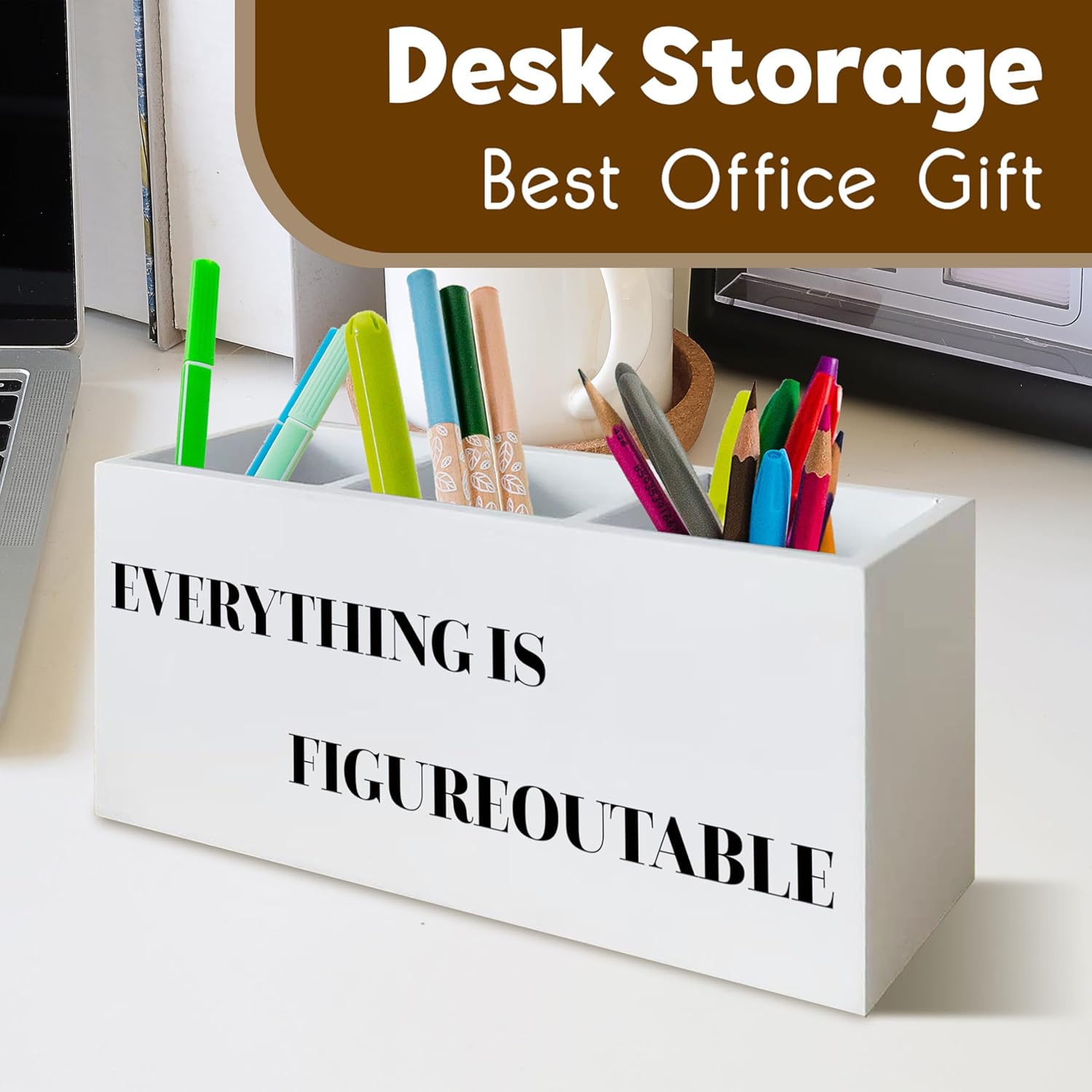 Everything is Figureoutable Inspirational Pen Holder for Desk, Motivational Gifts for Coworkers Women Men, Positive Quote Wooden Pen Pencil Holder Organizer for Office Desk Accessories