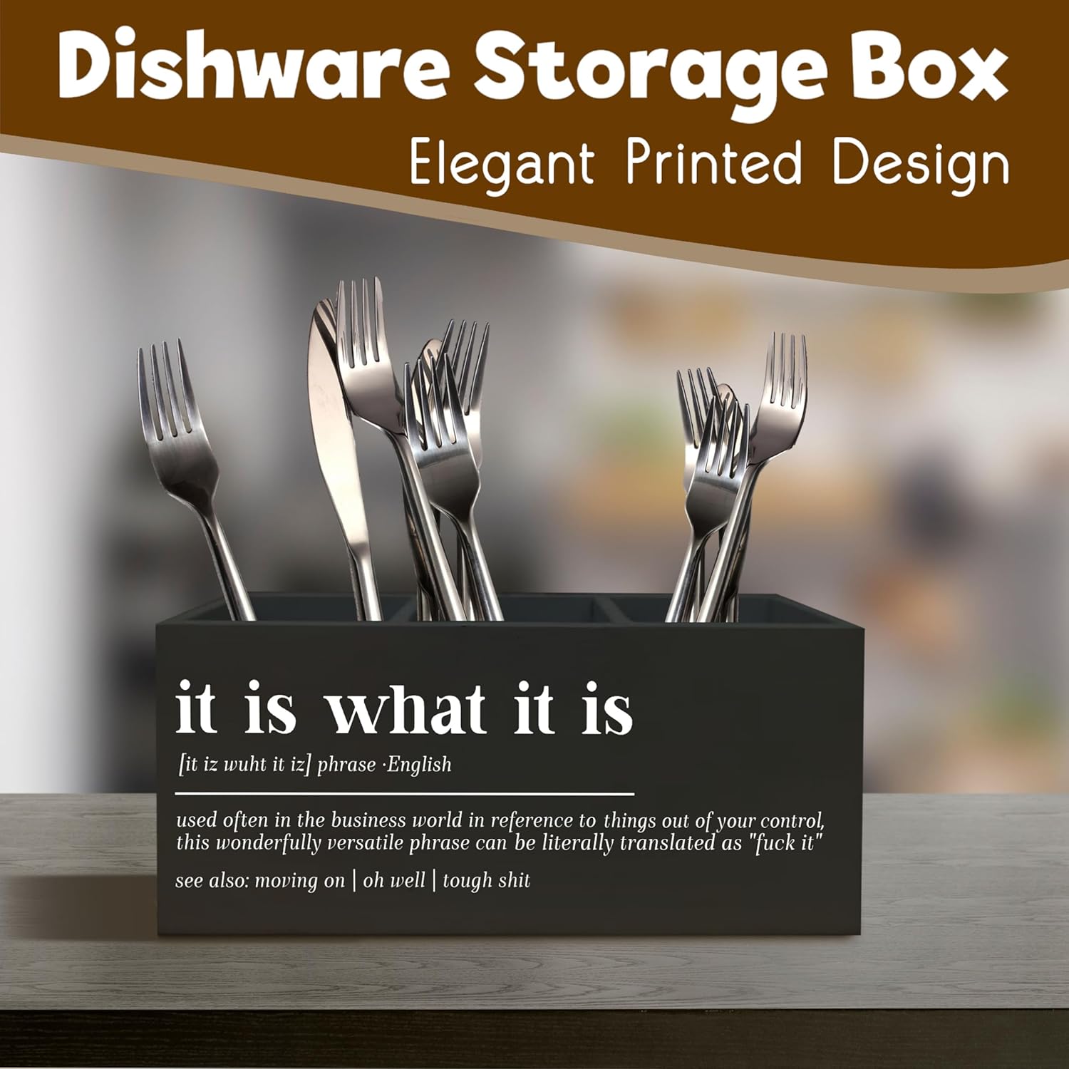 Funny Office Black Desk Pen Holder, It Is What It Is Funny Gifts for Coworkers Funny Signs Wooden Pencil Holder Decor for Office Bathroom Shelves Boos Desk Accessories