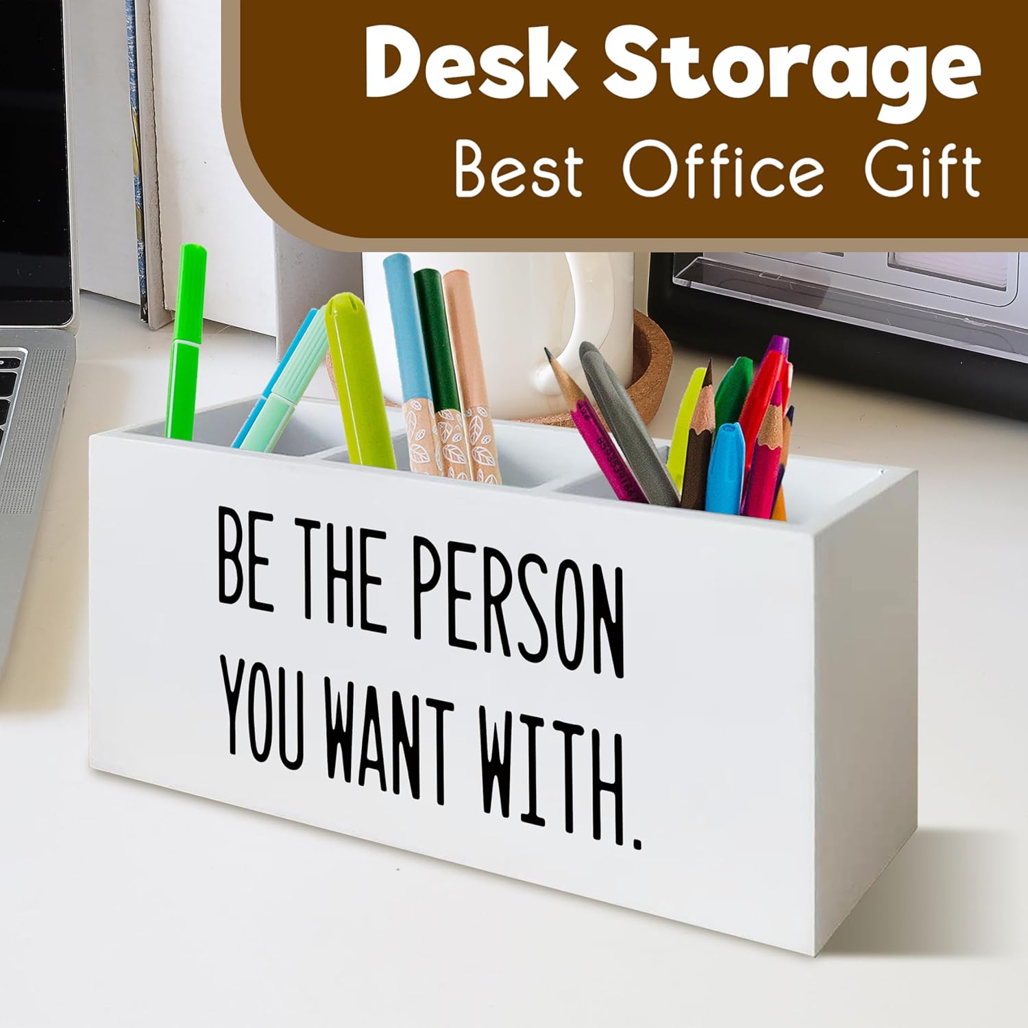 Be the Person You Want With Office Decor Pen Holder for Desk, Motivational Gifts for Human Resources signs, Motivational Wooden Pencil Holder Office Desk Accessories