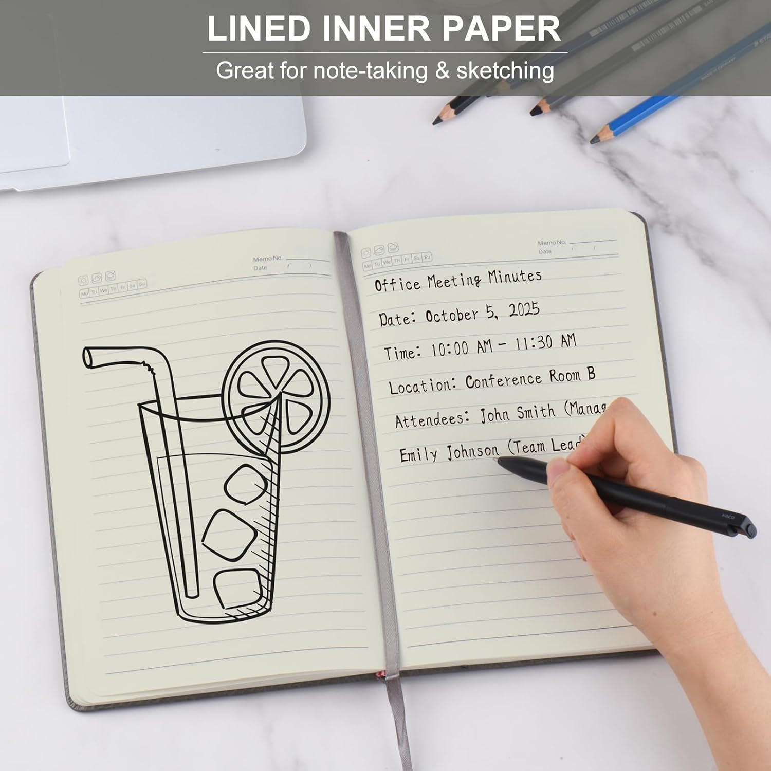 - Vintage Faux Leather Journal: The notebook features soft vegan faux leather cover, protecting your percious ideas and notes.These ruled journal notebook is perfect for taking notes, writing, meeting and etc. It will be a good partner for you at work, school, travel and daily life. The paper are made of FSC-Certified wood
