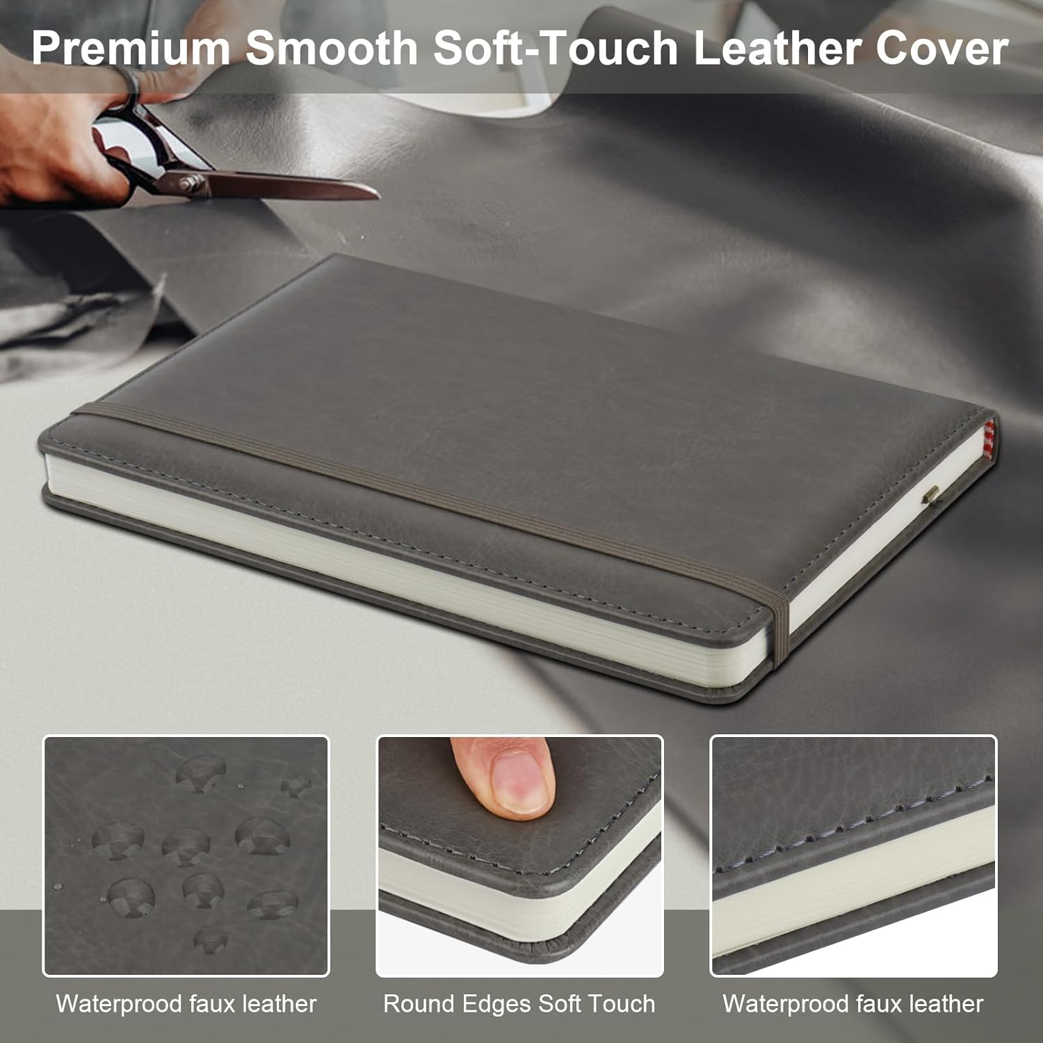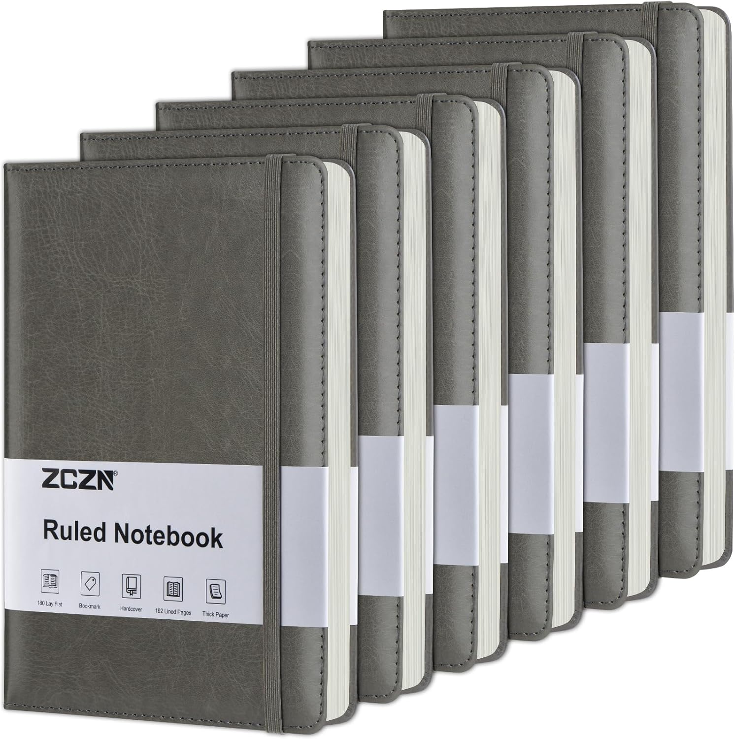 - 192 Pages Lined Journal Notebooks: 6 grey hardcover notebook, ,192 pages/96 sheets per notebook (1152 pages/ 576 sheets in total), adequate for work, meeting, studying. The paper of the leather notebook is thick enough that ink won't bleed through. The light yellow paper is more eyes comforting, release eyes burden when writing. It is the ideal notebook for work, school, meeting, travel and dairy.