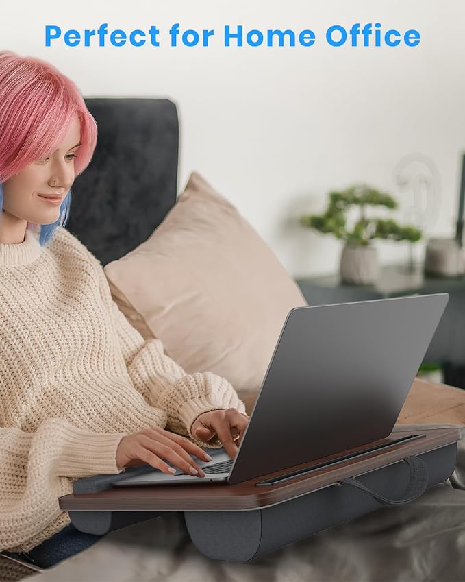 - Lap Desk for Laptop with Cushion: The hollow bottom design ensures ventilation, keeping you comfortable during extended use. Filled with high-quality pellets, it evenly distributes weight and eliminates pressure points.