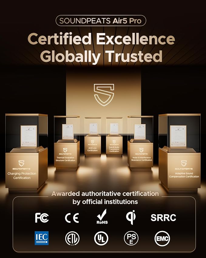 - 【Qualcomm Snapdragon Sound with aptX Lossless & LDAC】Featuring Qualcomm QCC3091 SoC with aptX Lossless Audio, Certified Snapdragon Sound, and Hi-Res Audio. SOUNDPEATS Air5 Pro wireless earbuds support for LDAC & LE Hi-res audio, LC3 codecs ensures compatibility with high-fidelity sources.