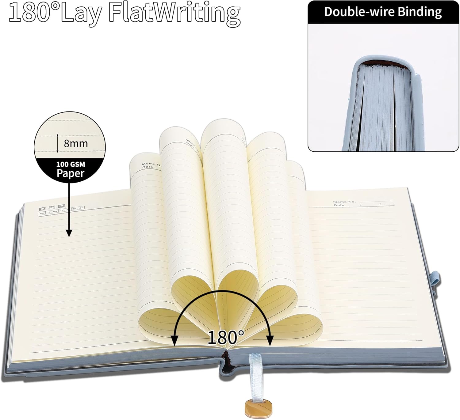 - A5 Sized Journal Notebook: The business notebook journal is 5.75x8.35 inches, easy to portable, perfect size to work or daily use for both men and women. The lined journal notebook has 300 Pages/150 sheets with 100 gsm/67 lb. ruled paper, thick enough to avoid ink bleeding, let you enjoy the smooth writing