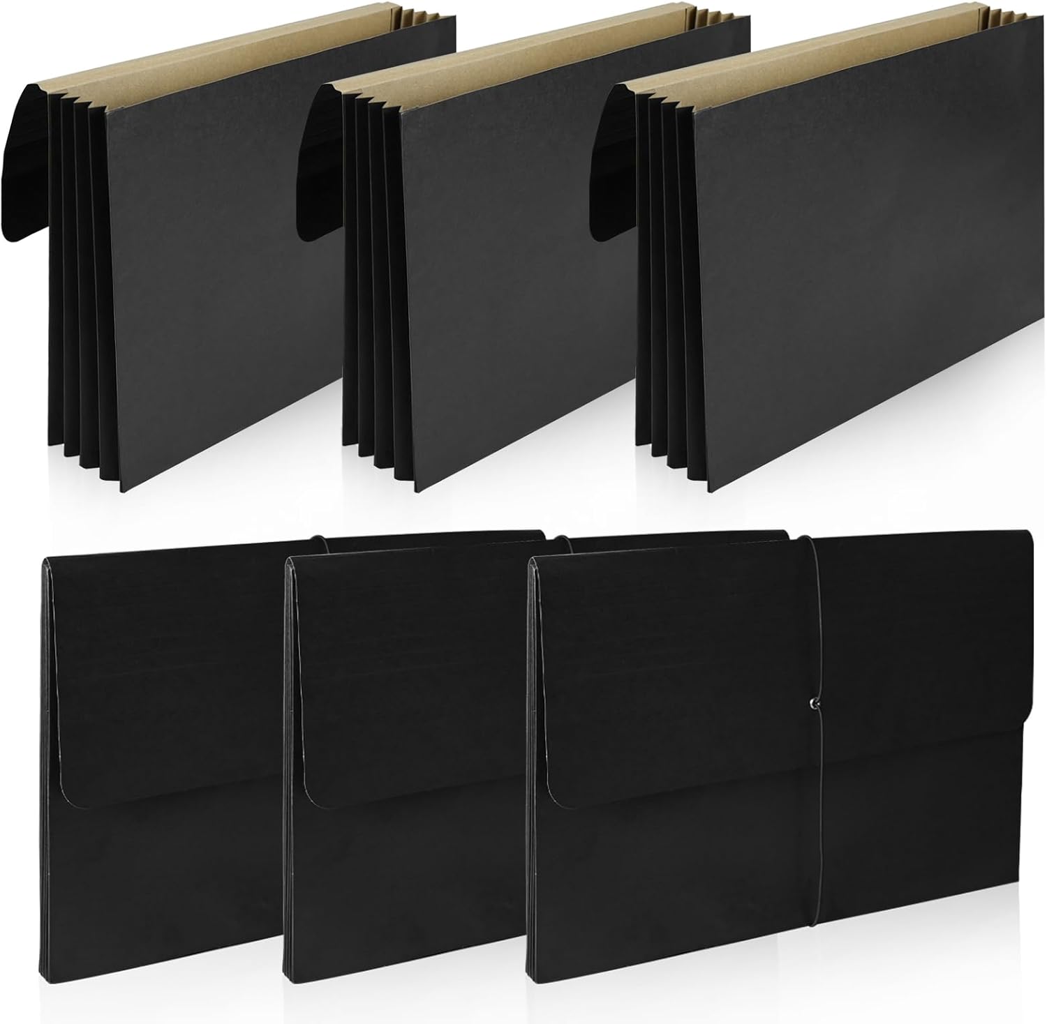 Expanding Accordion File Folder with Flap and Elastic Cord Closure Letter Size Accordion File Wallet Expanding Pocket Folders Document Organizer,4 inch Expansion,6 Pack,Black