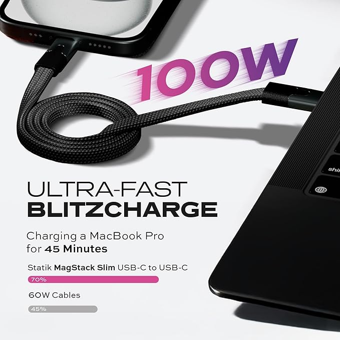 Statik MagStack USB C to USB C Cable, Magnetic Anti Tangle Flat Type C Charger Fast Charging Cord, Magnetic Charging Cable, Compatible with iPhone 16 Pro Max, 15, Galaxy S24 Ultra, 100W 6FT/2M