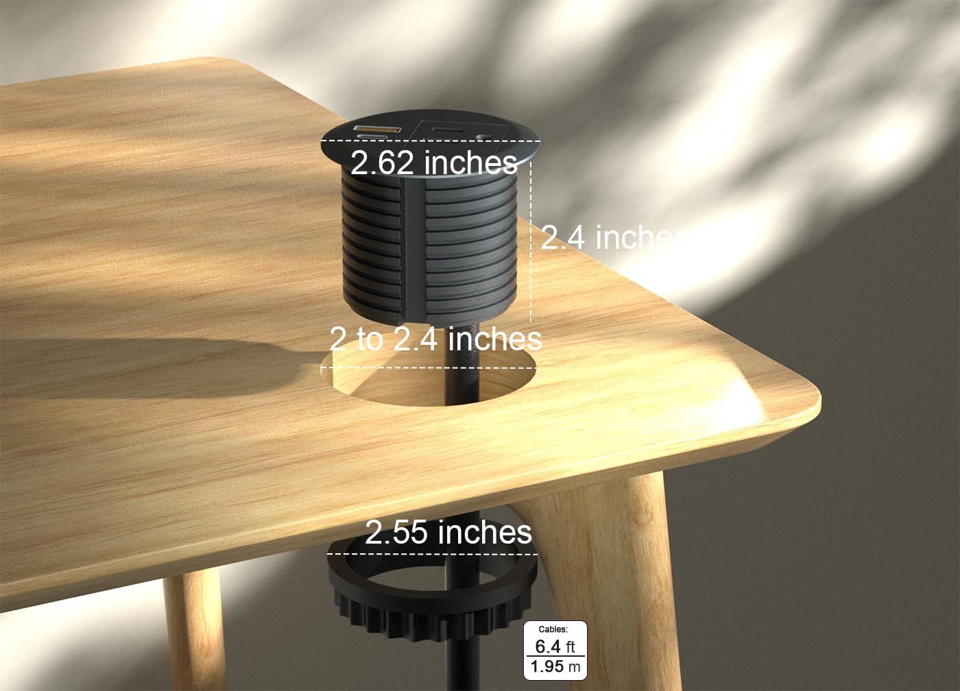 - All-in-One Recessed Power Outlet - 1 AC outlet,1 USB-A port,and 1 USB-C port power everything on your desk from a single recessed power grommet,6.41 ft extension cord