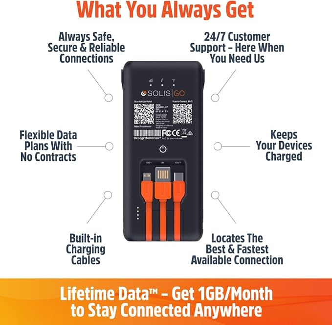 - Easy to Use: Simply download the Solis app and register your device; start using your Lifetime Data plan or add an additional WiFi option to safely and privately connect to available signals