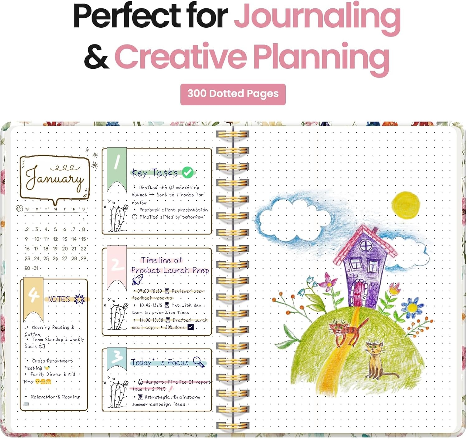 - 300 Pages Dotted Journal: Unleash your creativity with 5mm dot grid pages—ideal for journaling, sketching, planning, or goal tracking. Whether you’re using it as a work notebook, journal for writing, or notebook for school, it fits easily into your daily routine.