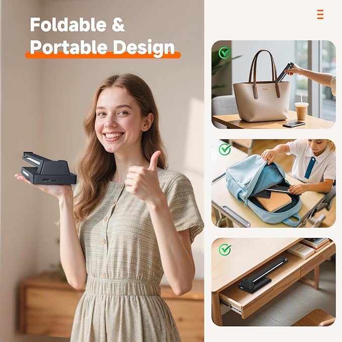 - Flexible Design: This modern student LED desk lamp features an adjustable bi-axial head and arm for maximum flexibility. It can rotate left and right by 180° and 90° foldable arm, letting you direct the light exactly where needed with a beam angle of up to 120°. You can effortlessly adjust the light whether for reading, writing, or working on projects. When you're done, fold the head and arm in two easy steps, and the lamp is ready to store or carry- perfect for home, office and college dorm.