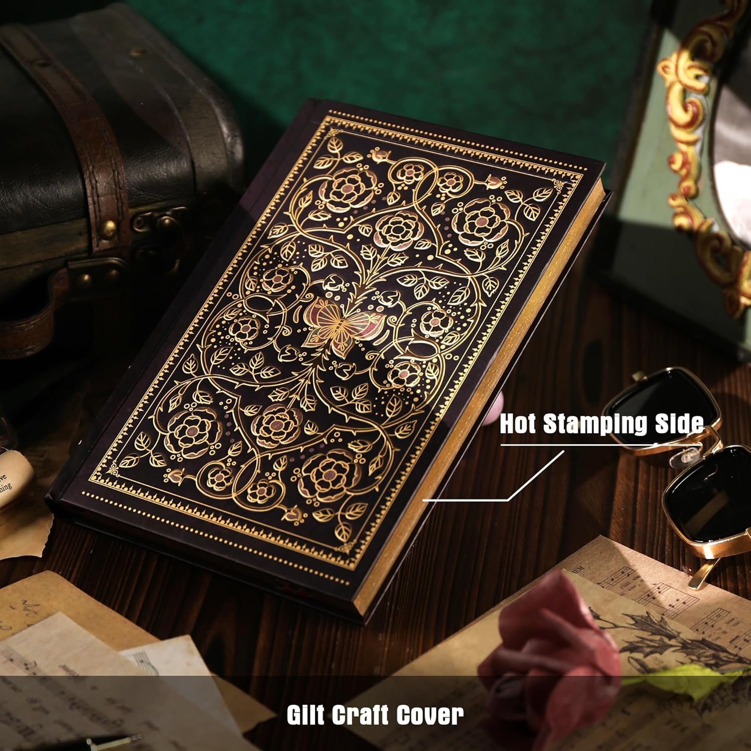 - Aesthetic Cover Journal: The cover is made of high-grade gilt embossing process, with delicate texture and three-dimensional touch, with vintage tone base, presenting low-key luxury aesthetic, which is suitable for daily use or as an exquisite gift for others. The gilt stamping details on the side enhance the overall sophistication and echo the gilt elements on the cover, highlighting the quality of the details and showing unique taste.
