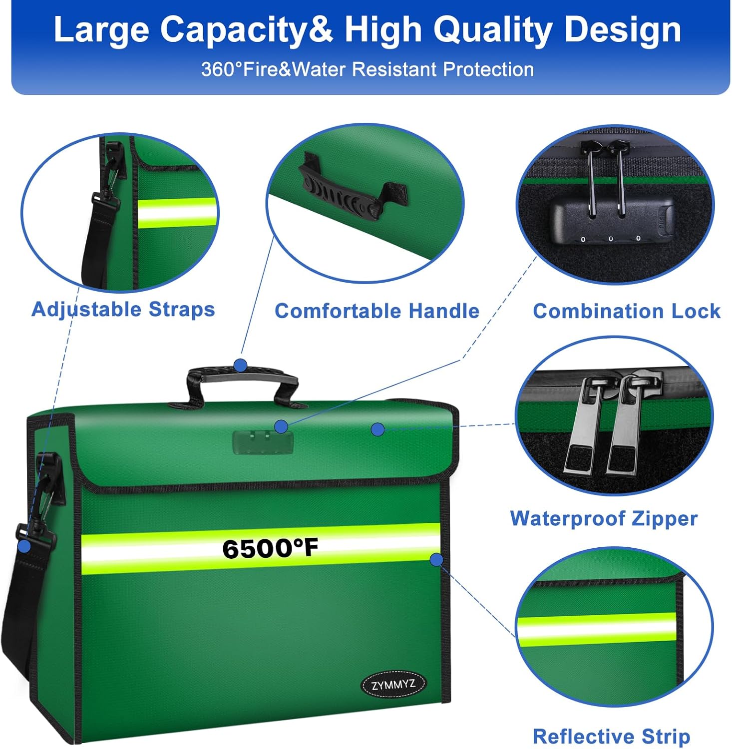 - ✅EXTRA LARGE CAPACITY. Extra large interior dimensions (14.1x9.5x4.2 inches) accommodate the largest binders and provide space for laptops, valuables, and more. Our unique U-shaped zipper closure maximizes open space for easy access to items, while the straight zipper fireproof pocket limits loading. The interior zipper pocket allows you to safely store small items such as passports, cash, and jewelry.