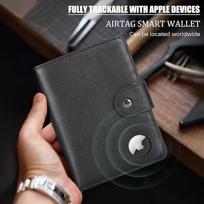- Dimensions: 4.5(L)*6(H) inches /11.5(L)*15.4(H) cm. Item weight: 0.26lb/0.12kg. Designed with a built-in AirTag holder to keeps your AirTag securely in place. Put your AirTag into the snap AirTag slot and never lose your passport wallet again, providing added security and convenience during your travels. (AirTag Not Included)