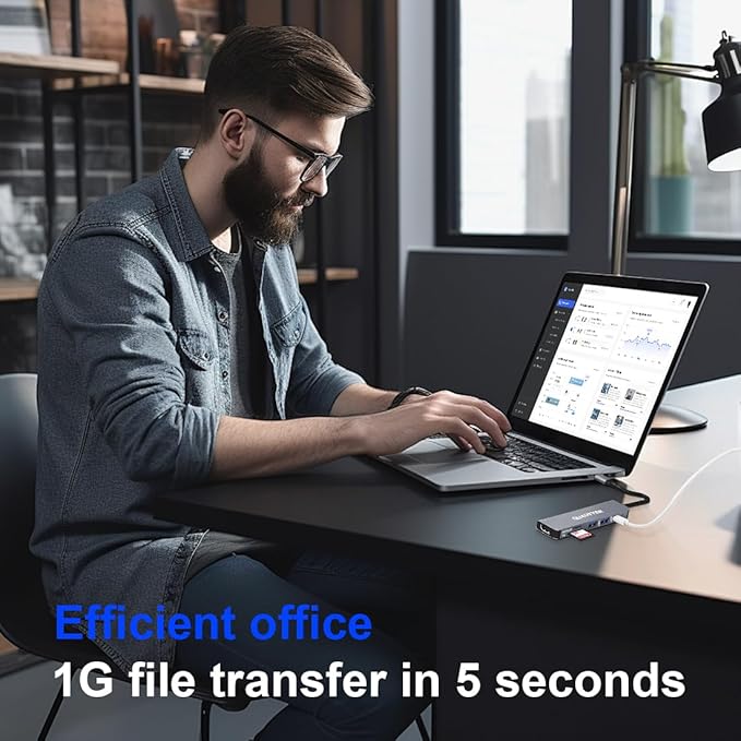 - HDMI to USB C Adapter Multiport 5Gbps Data Transfer:Maximize productivity with the usb c to usb adapter! The USB 3.0 port delivers 5Gbps speeds while SD/TF slots make this usb dongle a lifesaver for creatives. Photographers and videographers will love offloading footage via the usbc dongle multiport adapter β all through a single usb hub usb c connection. Streamline your workflow with this mac adapter multiport